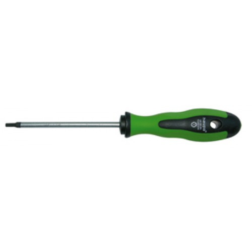 Отвертка оснащена двухкомпонентной рукояткой из полипропилена/термоэластопласта, стержень из молибден-ванадиевой стали, шлифованное жало, закаленный, прошедший пескоструйную обработку и хромированный стержень, с черным наконечником